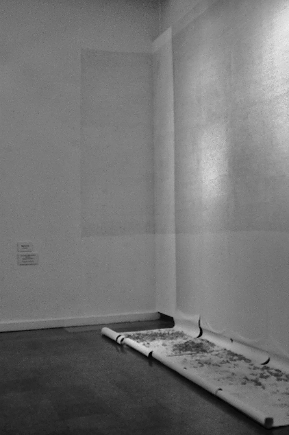 Installation view of performance documentation. Quotidian drawing and invisible labour, 2018.